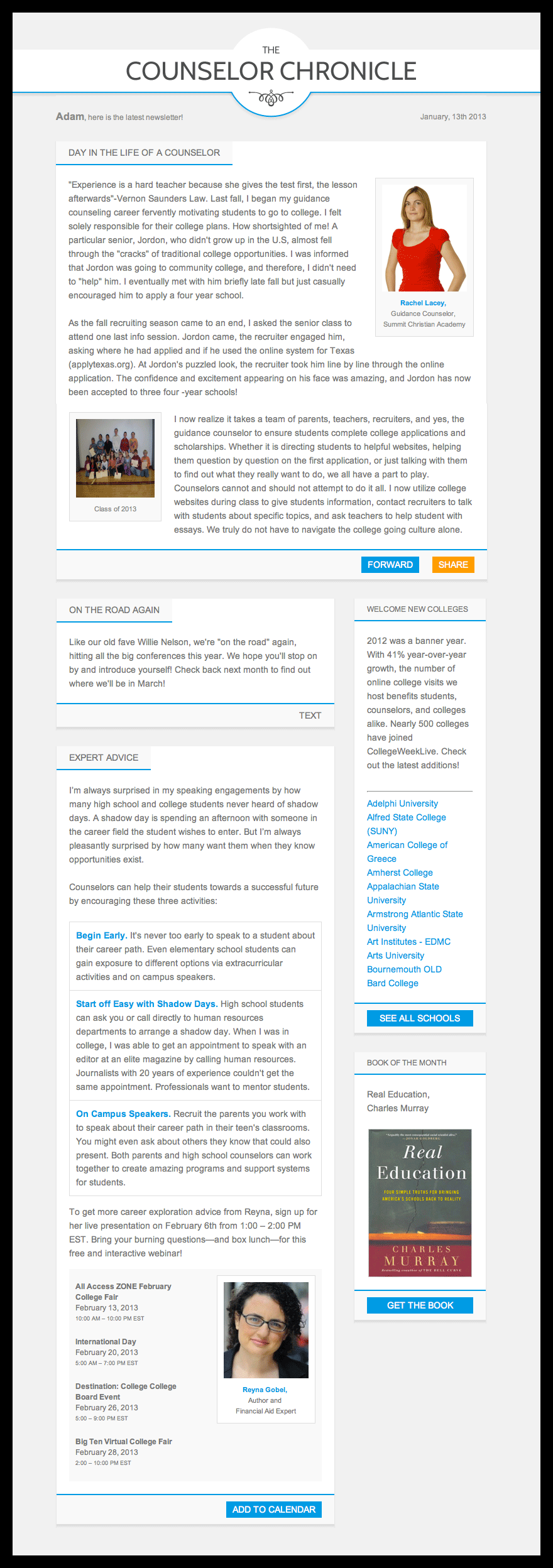 "..you have been such a key player in launching this site. It looks really, really good. You should be very proud."
