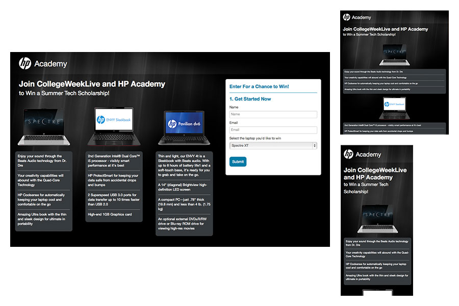 I design and code responsive emails that resize and re-format depending on the viewer's screen size, so they look great whether viewing on a desktop, laptop, tablet or phone and on all email carriers such as Outlook, Gmail and Hotmail. I've developed emails for companies like Toshiba, Hewlett Packard, the Air National Guard, Sallie Mae, The US Department of Education, Pfizer and many more.